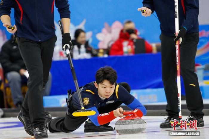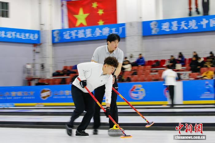 图为乌龙江两队选脚于镇也正在角逐中抛壶。中新社记者 马铭行 摄